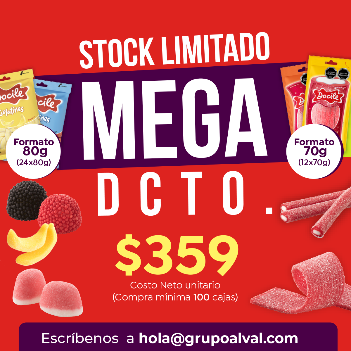Representante oficiales de la marca Docile en Chile. Descubrir es delicioso, deléitate con los mejores tubos, cintas y gelatines que hoy tenemos para ti, en diferentes sabores, formas y colores. Para quien experimenta, el descubrimiento, es total.